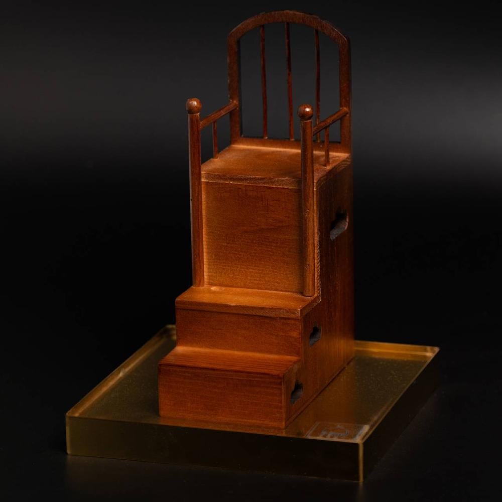 - نموذج المنبر في العهد النبوي مصنوع من الخشب.