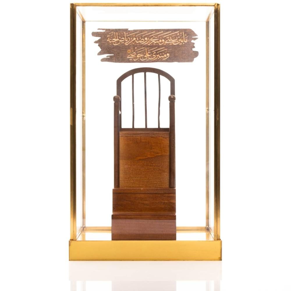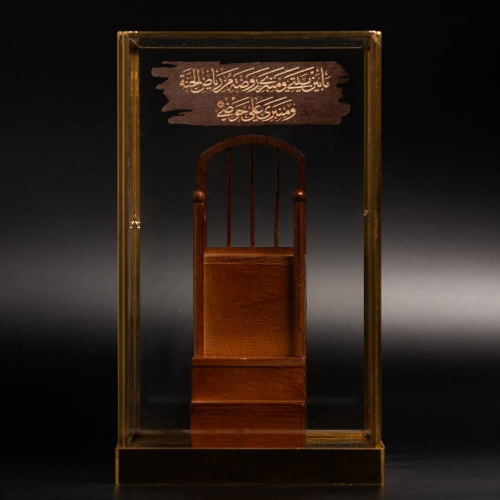 تحفة تذكارية للمنبر في العهد النبوي وهي تحفةٌ خشبيةٌ فريدةٌ تستندُ إلى قاعدةٍ معدِنيةٍ مطلية بالذهب، ومحفوظة في غِلافٍ مِن الأكليريك الشفاف،