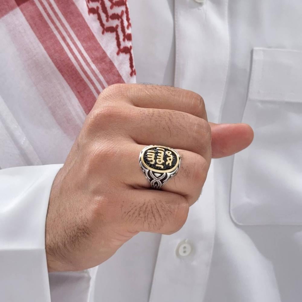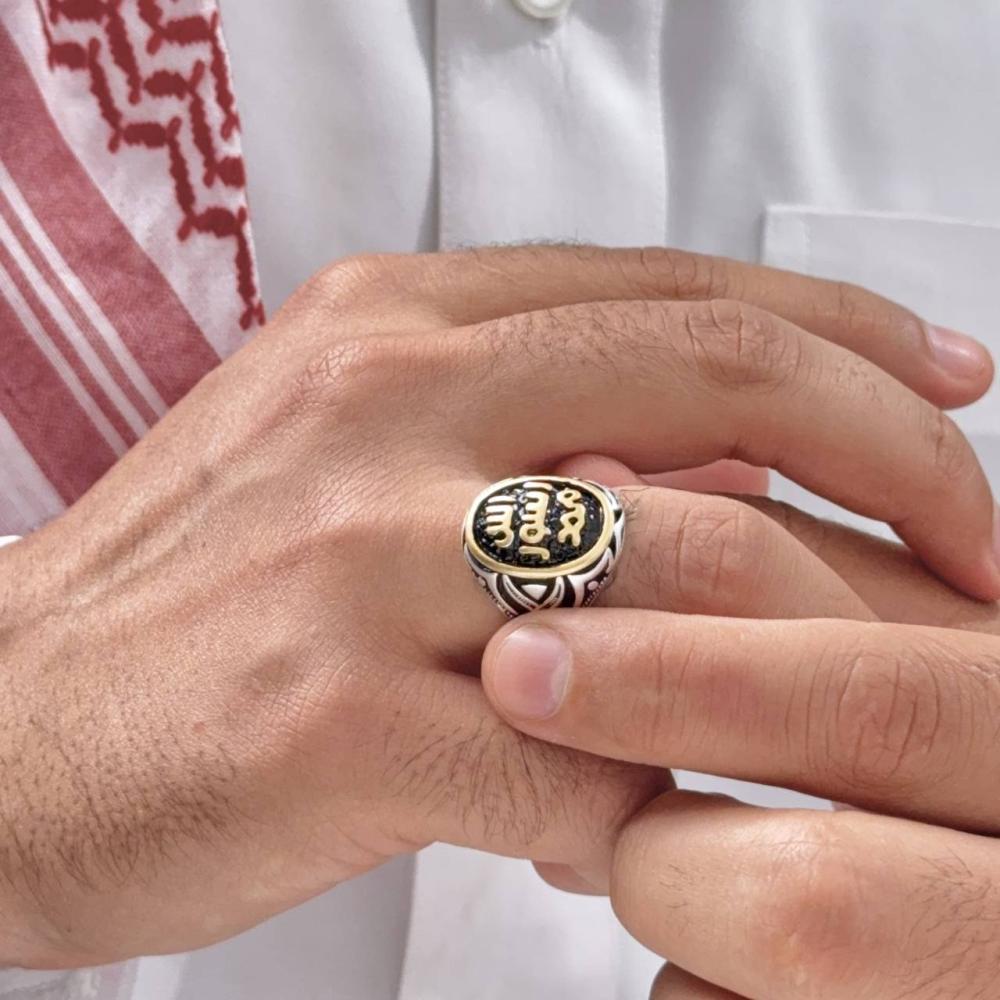 "The Bashir oval black ring is the most exquisite adornment for men. It mimics the ring of Prophet Muhammad (ﷺ) and is made from rust-resistant, silver-plated metal. A wonderful inscription of ""Muhammad is the Messenger of Allah"" beautifies it, and its black color adds grandeur and luxury.