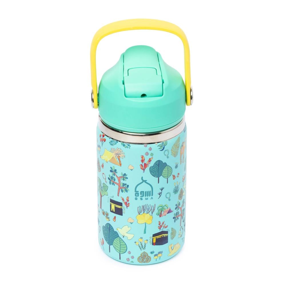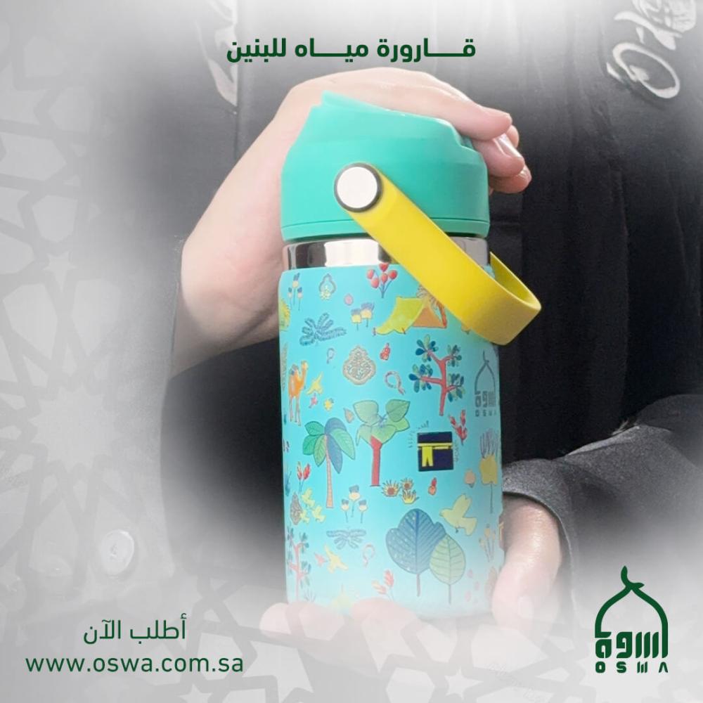 Because boys need a special water bottle in school, club, and travel to maintain their health, be sure to gift them this bottle, which is characterized by its blue color, and elegant design. It comes in a practical white box that saves it and increases its value since the box is decorated with the Oswa logo which is an Islamic symbol.